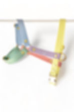 - Les harnais sont réalisés avec une bouclerie en laiton, une sangle en polypropylène pour renforcer votre harnais au maximum, recouverte d’un joli tissu imperméable.